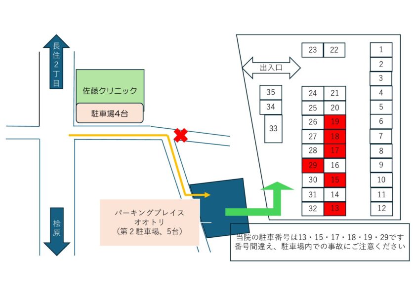 A1. はい。病院の敷地内に4台駐車可能です。現在敷地外にも6台駐車場を借りておりますので、病院敷地内の駐車場が満車の際にはご連絡ください。また、コインパーキングに駐車してご来院される方は、出庫の際に領収書を発行していただき、後日(当日)領収書を持参していただければ駐車料金をお支払いいたしますので受付にお声がけください。